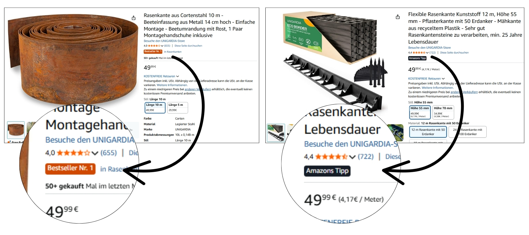 O tom, že se nám to daří svědčí přes 2 000 ověřených recenzí na Amazonu. Naše produkty také pravidelně získávají tzv. Bestseller ocenění (nejprodávanější produkt ve své kategorii na Amazonu) a Amazons Tipp ocenění (Amazonem doporučované produkty s výborným hodnocením). Na naši nabídku a hodnocení na Amazonu se můžete podívat zde.
