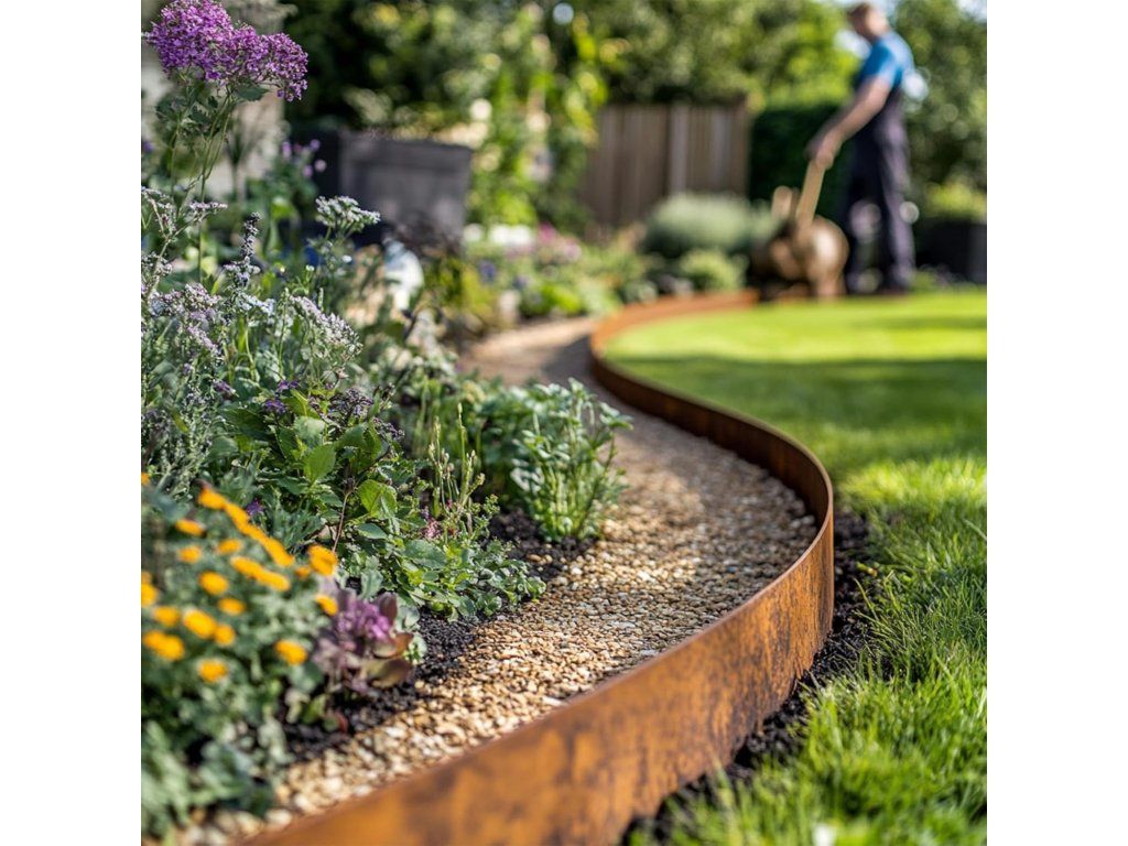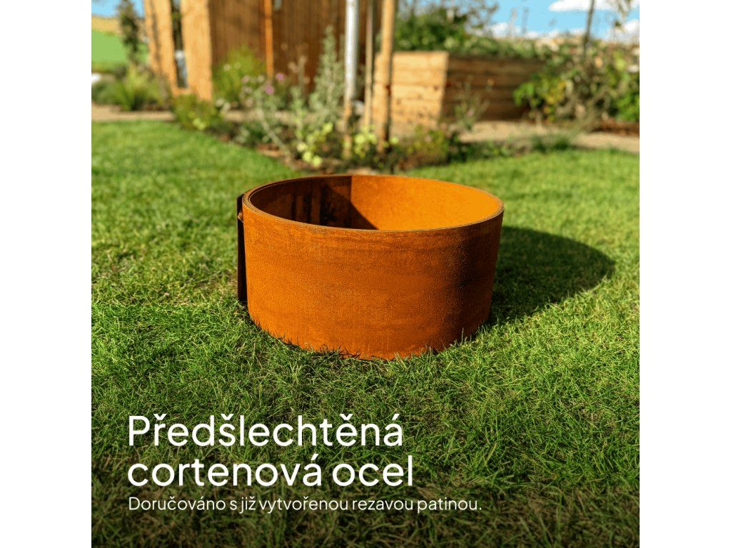 Vyroben z autentické kortenové oceli, která časem získá charakteristickou rezavou patinu. Vaše zahrada tak získá nejen pevnou, ale i esteticky působivou hranu.
