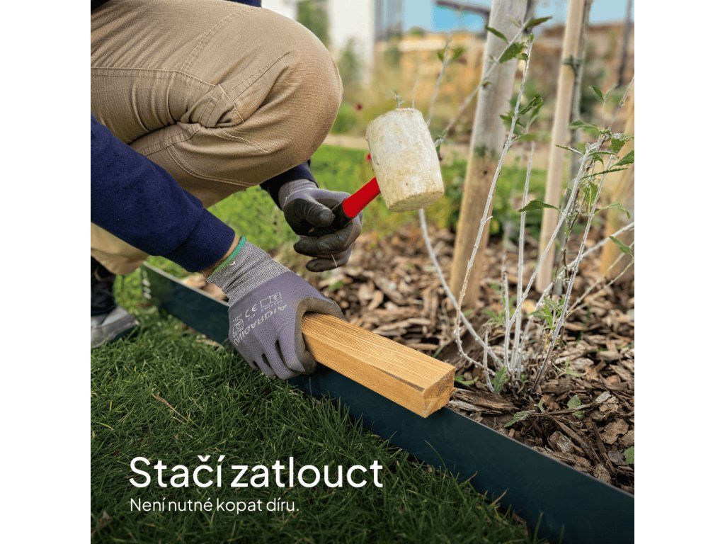Zapomeňte na zdlouhavé kopání rýh – díky spodním hrotům stačí obrubník zatlouct kladivem do země. Instalace je rychlá, snadná a zvládne ji každý.