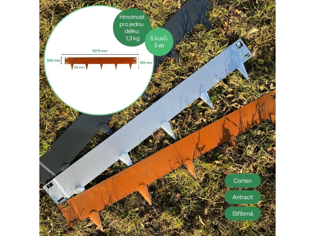 Pokud hledáte odolný obrubník, který instalujete během chvilky a zároveň vaší zahradě dodá styl i dlouhověkost, kovový obrubník z kortenové oceli s hroty je jasná volba! 🌿