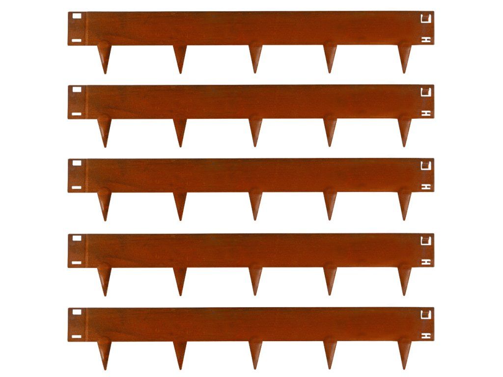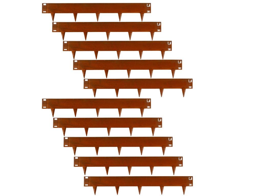 Kovový travní obrubník s hroty - corten, výška 18,5 cm, délka 5-10 m (5-10 ks)