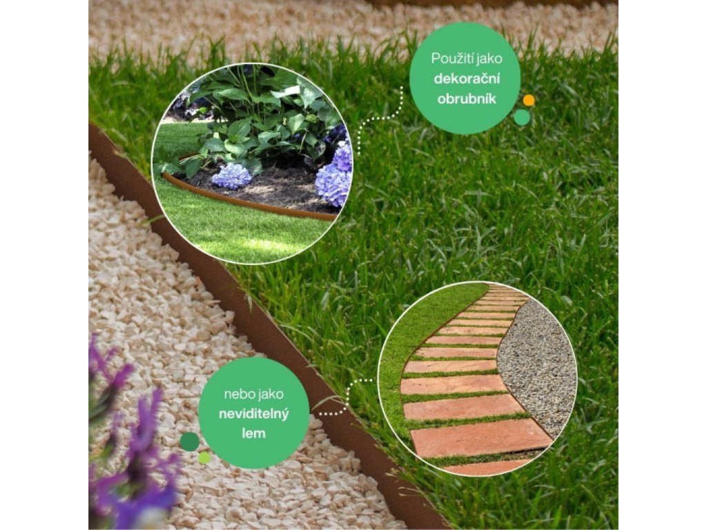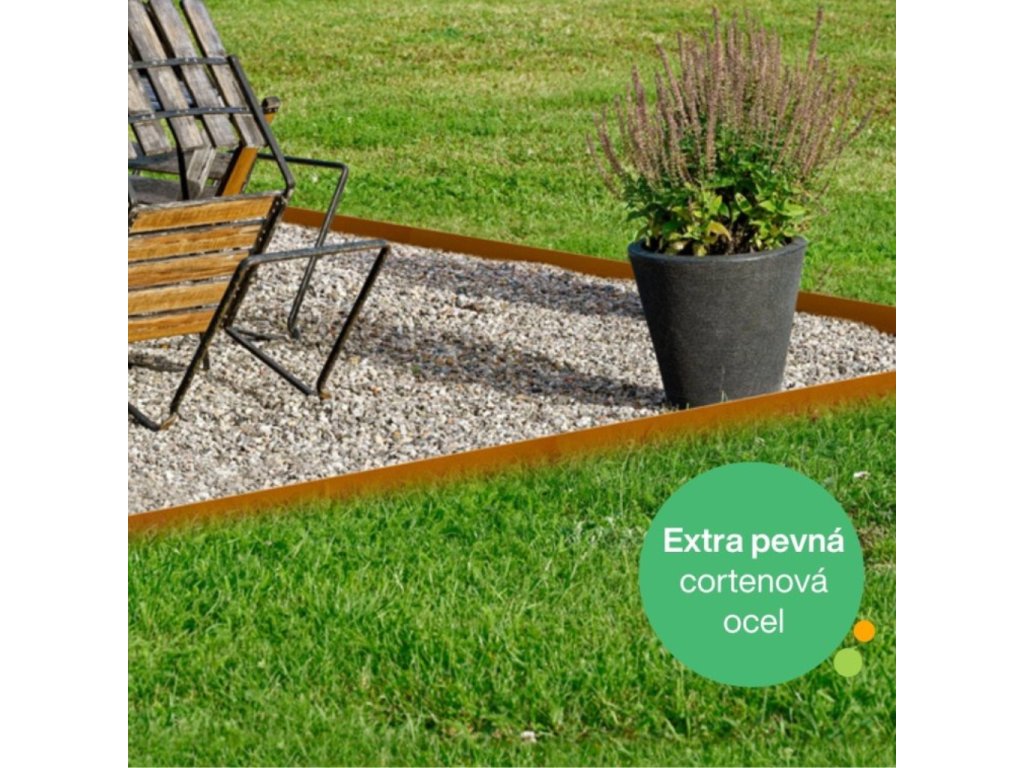 Kromě praktické funkčnosti obrubník přináší i dekorativní prvek do vaší zahrady. Rezavý povrch dodává přírodní industriální vzhled, který krásně kontrastuje se zelení a skvěle zapadne do moderních i rustikálních zahrad.