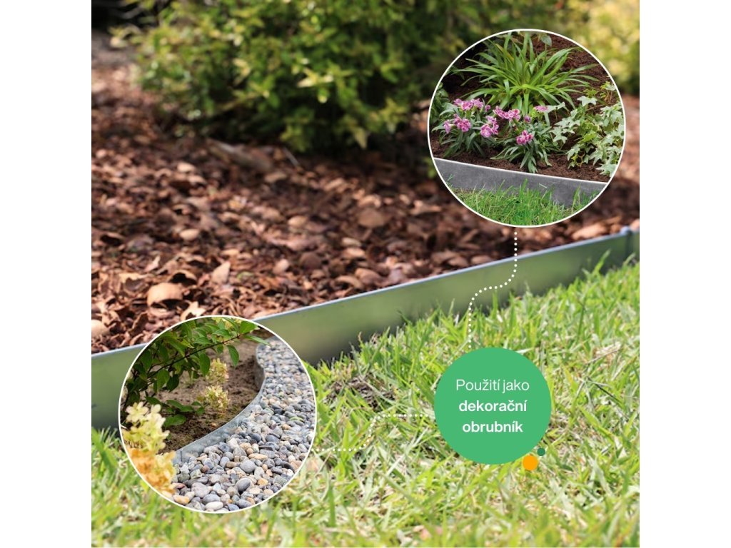 Pokud hledáte praktické a trvanlivé řešení pro precizní ohraničení zahrady, kovový obrubník z galvanizované oceli je skvělou volbou – rychlá montáž, maximální odolnost a čistý design v jednom! 🌿