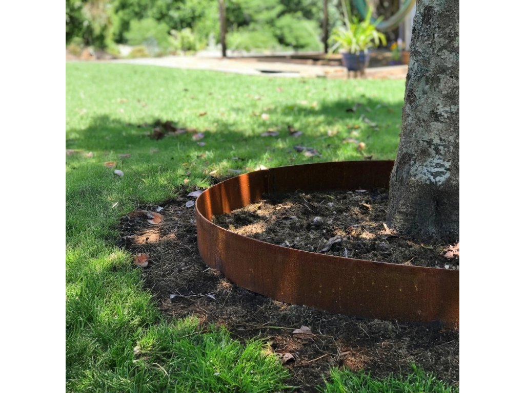 Kovový kruhový obrubník z cortenové oceli je designové a zároveň funkční řešení pro olemování stromů, keřů či záhonů. Vyrobený z pravé cortenové oceli o tloušťce 1 mm a výšce 20 cm, která přirozeně reaguje na povětrnostní vlivy, postupně získává charakteristickou rezavou patinu. Ta je součástí ochranné vrstvy, díky které je výrobek odolný a zcela bezúdržbový.