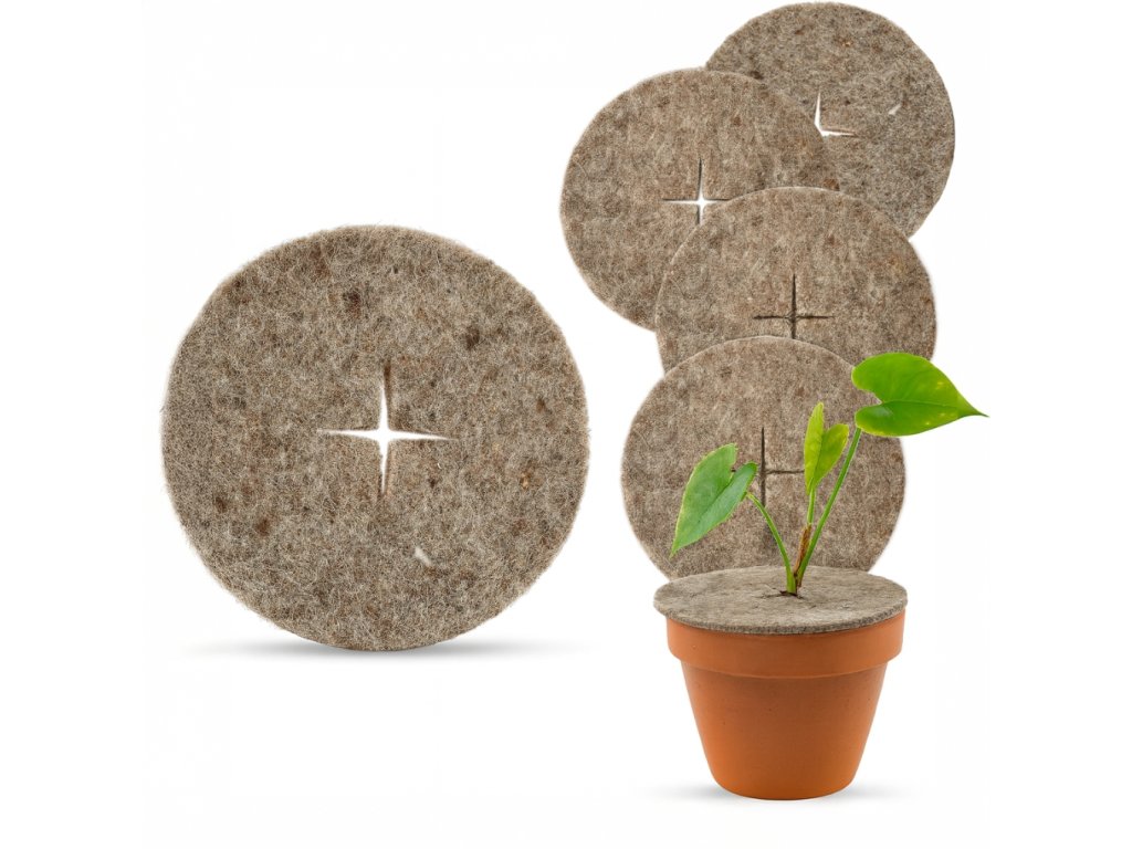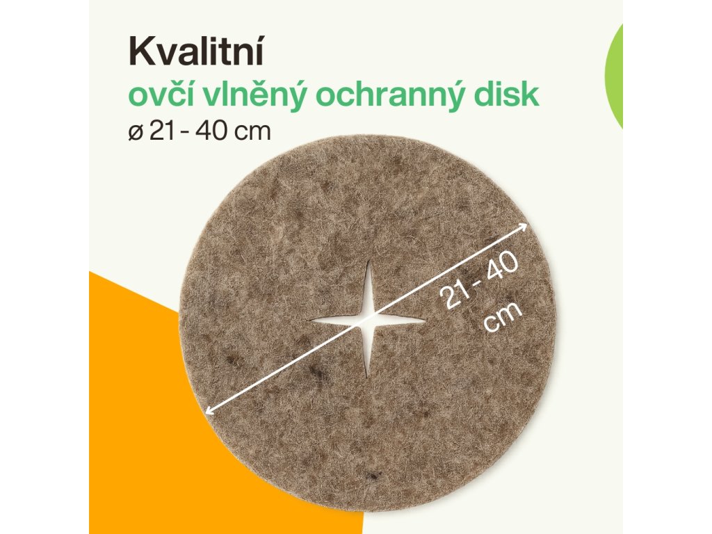 Ovčí vlna, která je přírodní a ekologická, poskytuje rostlinám komplexní ochranu před plevelem, mrazem i vysycháním půdy. Udržuje optimální vlhkost a teplotu a zároveň ji obohacuje o živiny, což podporuje zdravý růst. Díky snadné manipulaci a univerzálnímu použití jsou disky ideální pro květináče, keře i mladé stromky.