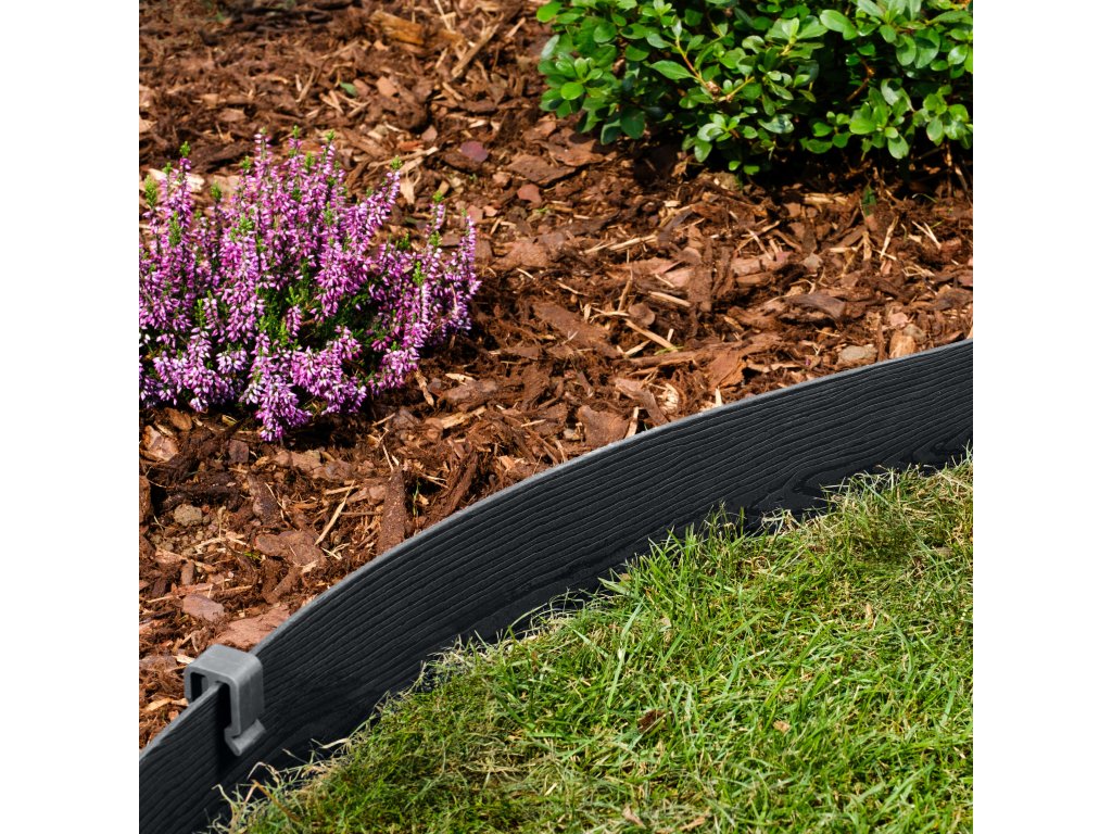 Obrubník v dřevěném dekoru a elegantní černé barvě se přirozeně začlení k záhonům i trávníku a opticky sjednotí celkový vzhled zahrady. Ideální pro ty, kdo hledají esteticky čisté řešení bez kompromisů.