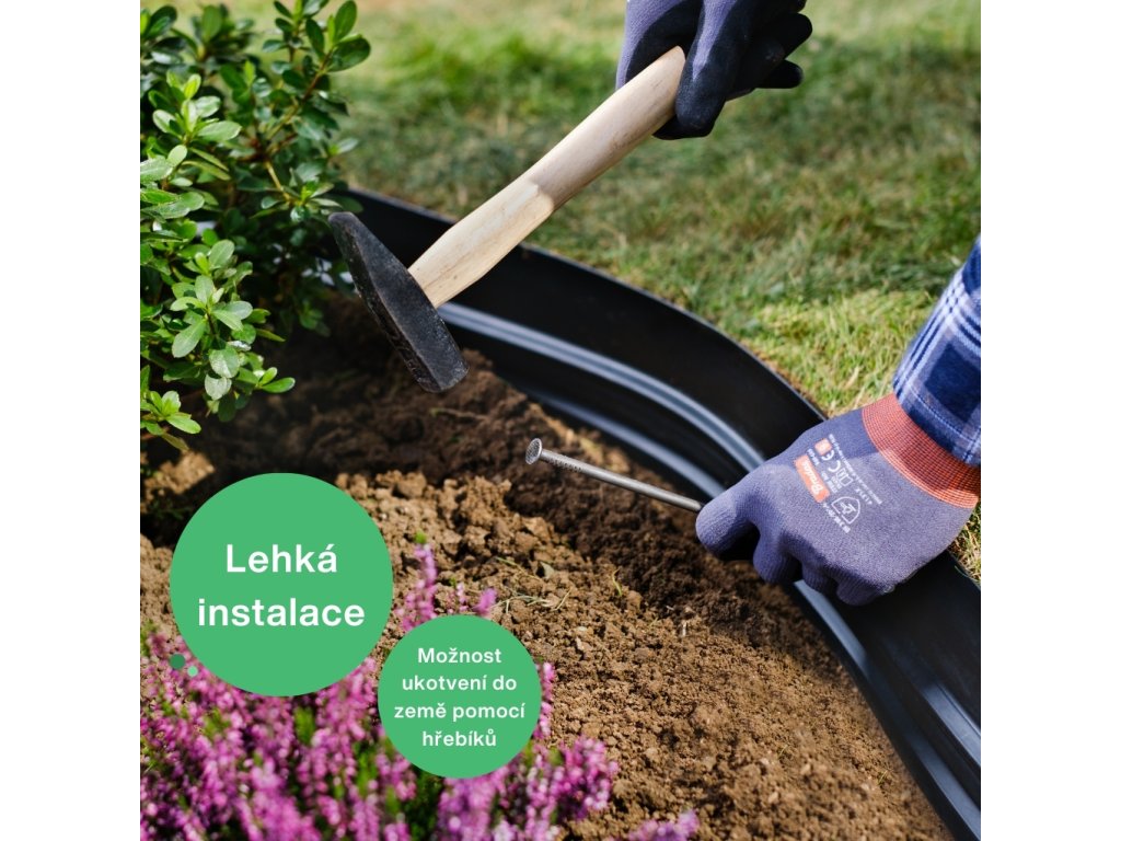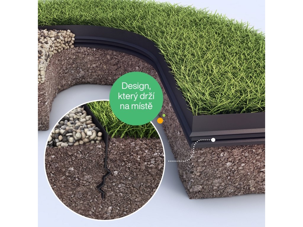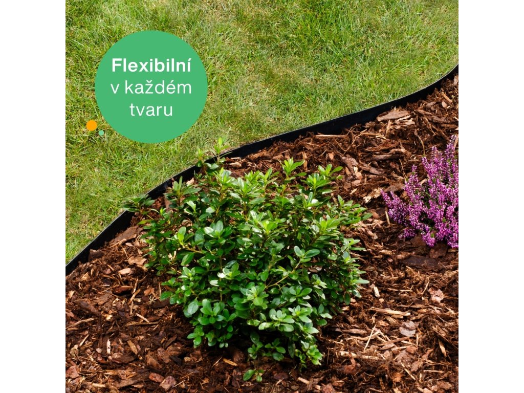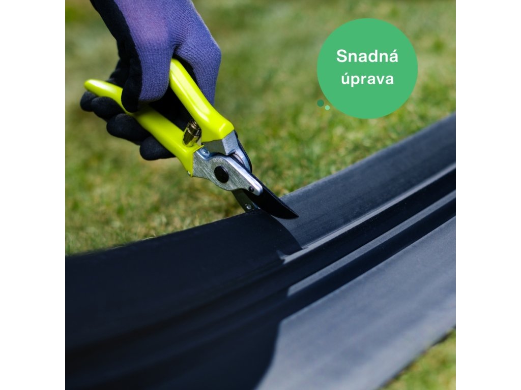 Materiál je pružný a snadno se přizpůsobí jak rovným liniím, tak obloukům či vlnám. Přesně kopíruje tvary vaší zahrady.