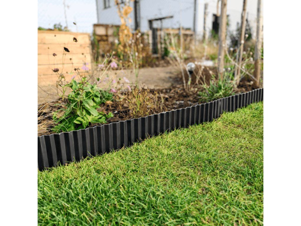 Obrubník je vyroben z kvalitní oceli s práškově lakovaným povrchem, který ho chrání před vlhkostí a zabraňuje vzniku rzi. Díky tomu je odolný vůči povětrnostním vlivům a vydrží dlouhé roky bez nutnosti údržby.
