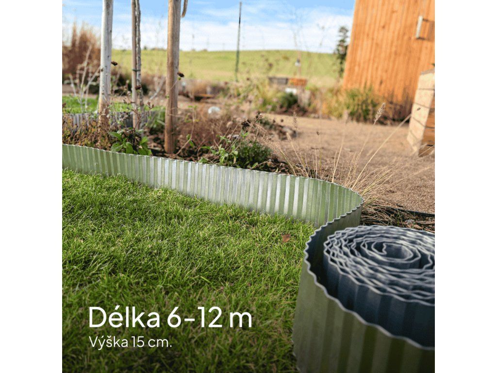 Vlnitý 15 cm vysoký kovový obrubník s pozinkovaným povrchem je odolný, flexibilní a stylový prvek pro vaši zahradu. Díky zvlněnému designu je pevnější než běžné rovné obrubníky a pozinkovaná ocel zajistí dlouhou životnost bez koroze. Ideální pro ohraničení záhonů, trávníků nebo cestiček.